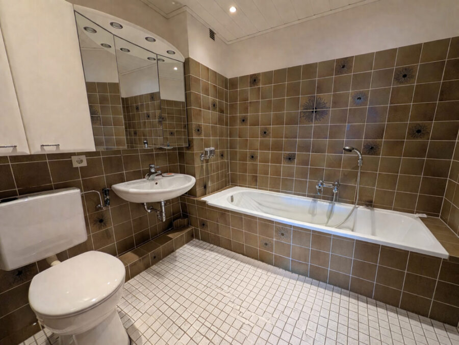 Die vorhandene Möblierung kann bei Bedarf entfernt werden, sodass die Wohnung leer und bereit für eine individuelle Renovierung übergeben wird.