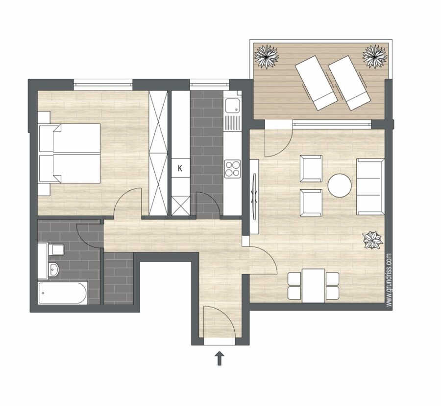 Mit einer durchdachten Wohnfläche von ca. 65 m² überzeugt die Wohnung durch ihren intelligenten Grundriss und helle, großzügige Räume. Die Aufteilung ist sowohl funktional als auch wohnlich: